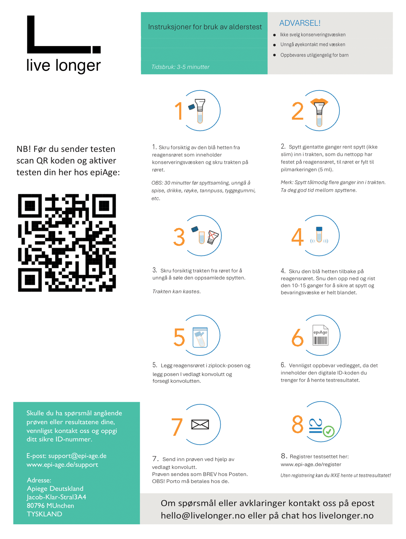 - Raskt resultat: Innen 4 uker får du en rapport med din biologiske alder.