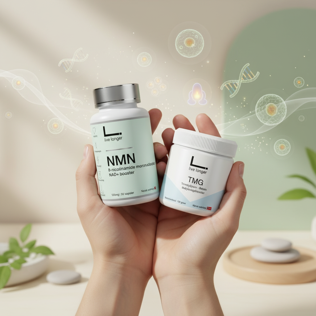 Vitality Duo Pack kombinerer NMN og TMG i en kraftfull formel som støtter energiproduksjon, DNA-reparasjon, avgiftning og kognitiv funksjon. NMN øker NAD+-nivåer for sunn aldring, mens TMG fremmer metylering og leverhelse. En ideell duo for deg som ønsker bedre utholdenhet, vitalitet og mental klarhet.